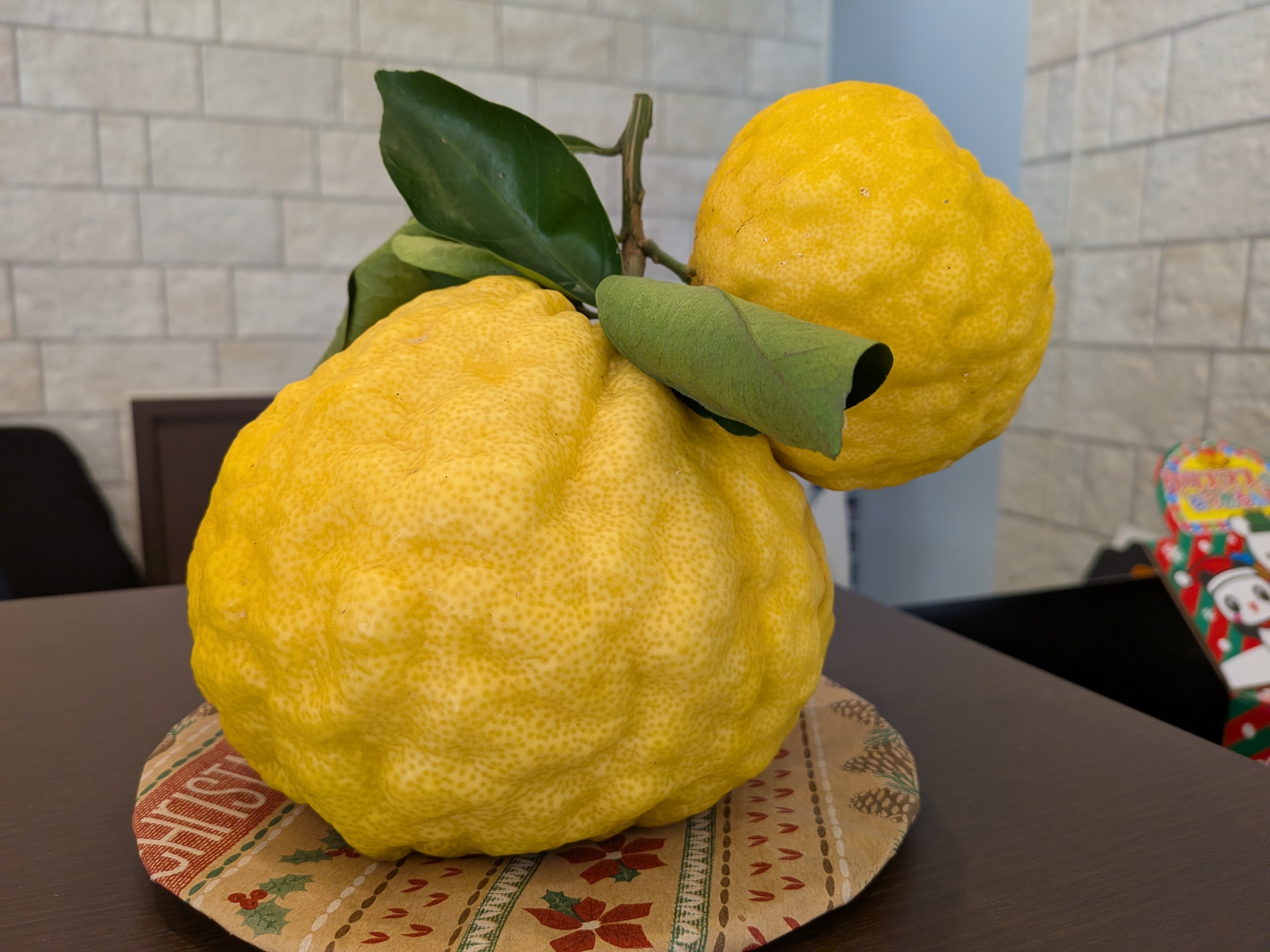 患者様A様から、見たことない…普段の柚子の数十倍のサイズの立派な柚子をいただきました(^^♪ありがとうございます!最近暗くなるのが本当に早いですが、これから少しずつ昼が長くなるといいですね✨