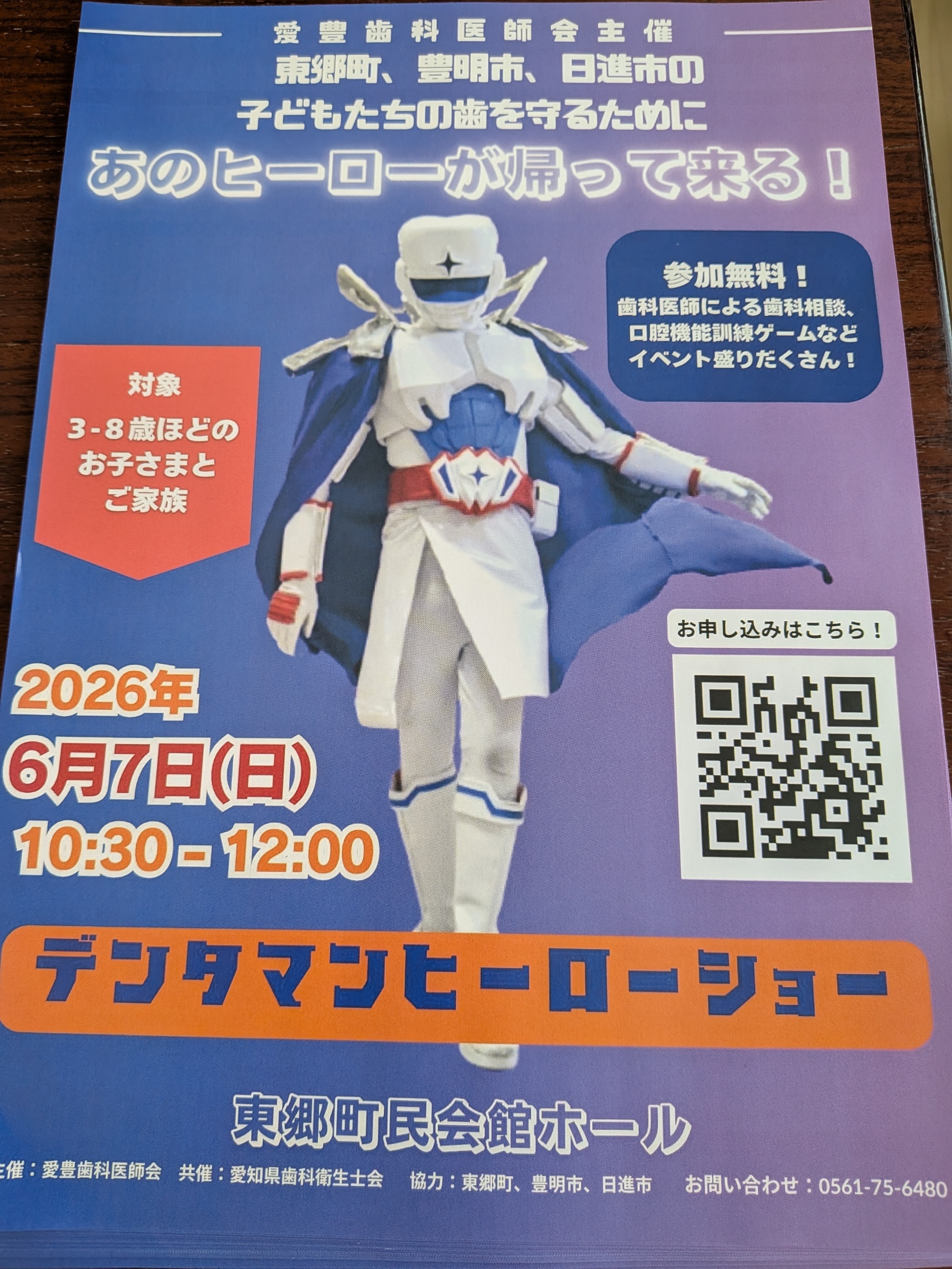 今年も子どもたちの歯を守ってくれるかっこいいヒーロー、デンタマンがやってきます。ヒーローショーの他に、唇の力のチェックやイベント、歯科相談、お土産までついて無料です✨